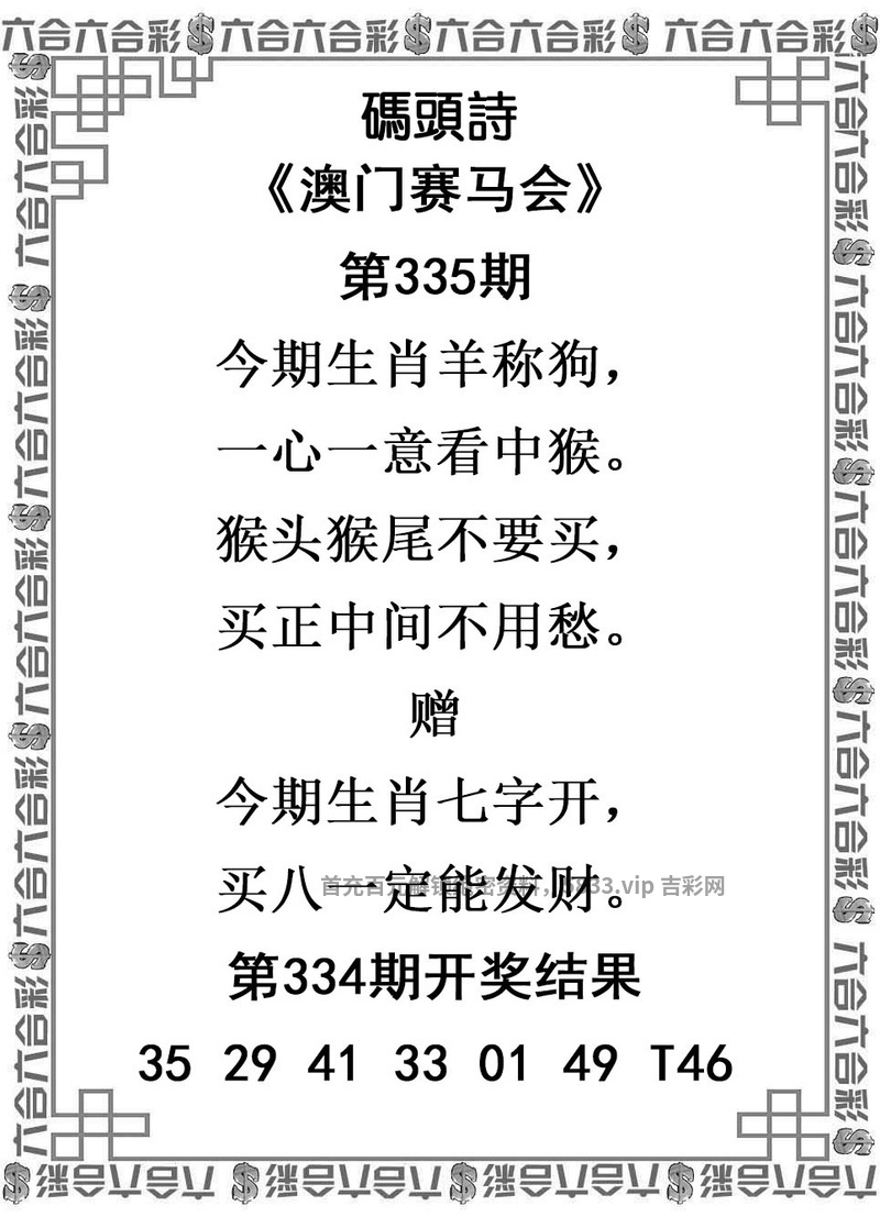 | 335期:七肖【猴蛇龙鼠牛猪狗】开:狗44准 |